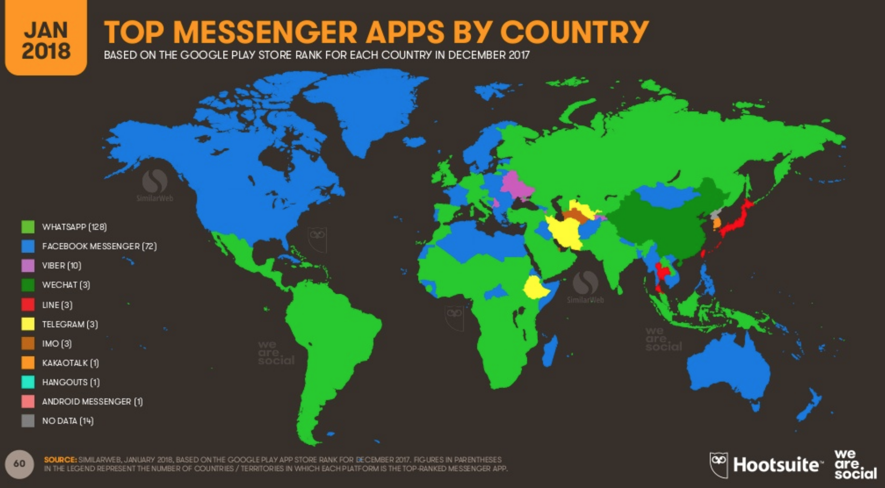 Here’s the map of the messaging apps which we reference from the Digital in 2018 Global Report during the podcast episode: